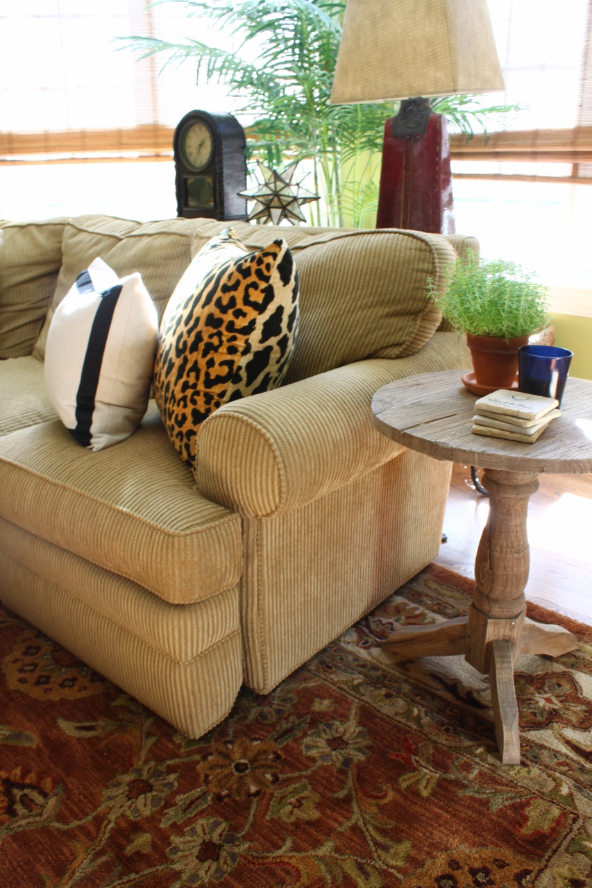 Wanting to add a little wow to the trampoline, er, … old sofa in our family room, I decided to get myself a great pair of leopard print pillows.
