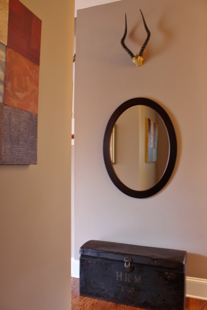 I decided to pair them with a simple ivory linen pillow (also from her shop) with a great black grosgrain ribbon detail.
