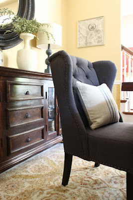 The lovely sheer drapery panels you see in the background were custom-made by Karen Flanagan of Sew Special Designs.