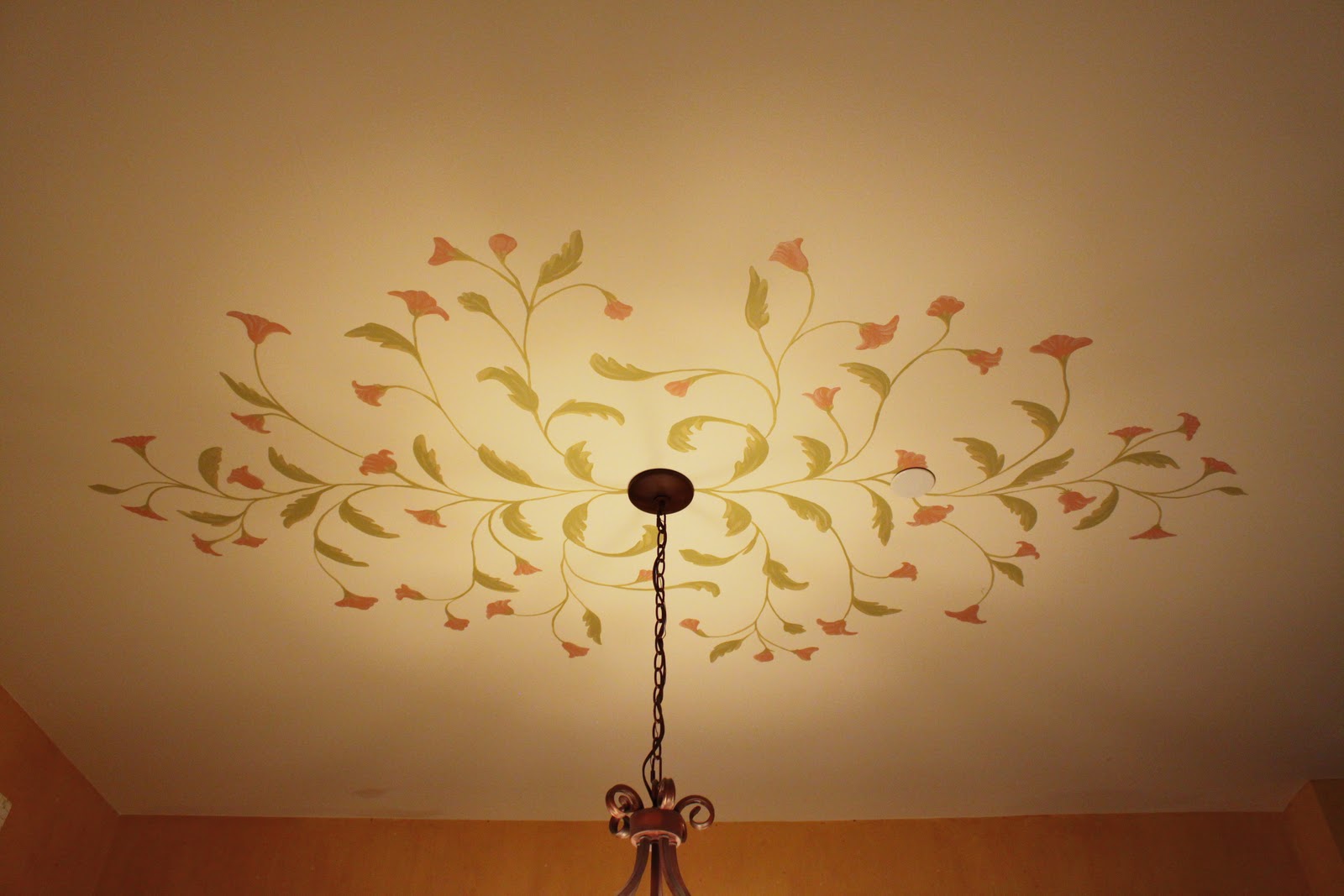 With tray ceilings like this, my preference is to take the paint color all the way up and to the ceiling to avoid a harsh line as in the first photo. We painted this room Sherwin Williams Alabaster.
