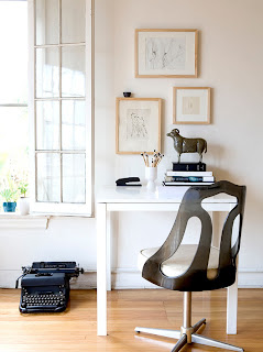I just love this corner vignette. The chair and ottoman are from Highland House. The fan is the Maverick from Circa Lighting. We were so happy to find a BEAUTIFUL fan!
